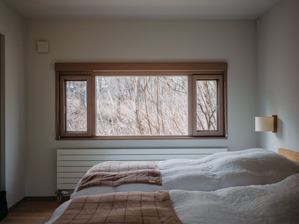 自然との調和を大切にした家づくりは、外からだけでなく家の中にいても表現されていた。2軒先の庭までを借景にするための出窓や、向かいの家の外壁が視界に入らないように低く設計された窓のおかげで、この家の窓の向こう側には、さまざまな木々や山並み、空が広がっている。これが「森暮らし」なのかと感じたが、〈morinoie〉が大切にしていることはもっと深いところにあった。