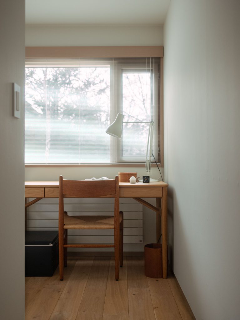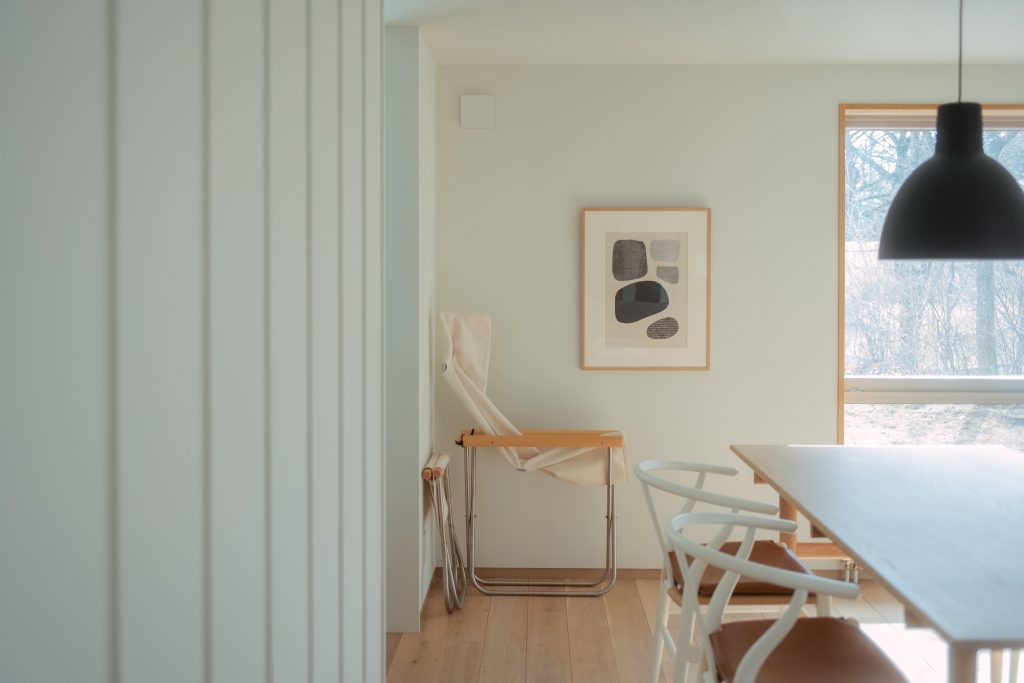 〈morinoie〉の建築に触れ、福岡さんの言葉を聞くごとに、ニーチェアエックスの思想に重なっていく。デザイナーの新居 猛が追求した時代や環境に左右されないデザイン、そして包みこまれるような座り心地。あらゆるインテリアやシーンに馴染むけれど、この『白の家』にはあたりまえにあるように感じられるのは、そういうことなのかもしれない。福岡さんが選んだのはホワイトのニーチェアエックスとオットマン。ここだけでなく、東京と京都のアトリエ、それぞれの自宅でも愛用しており、彼らが手がける山荘にも、施主の意向で導入することが多いのだとか。