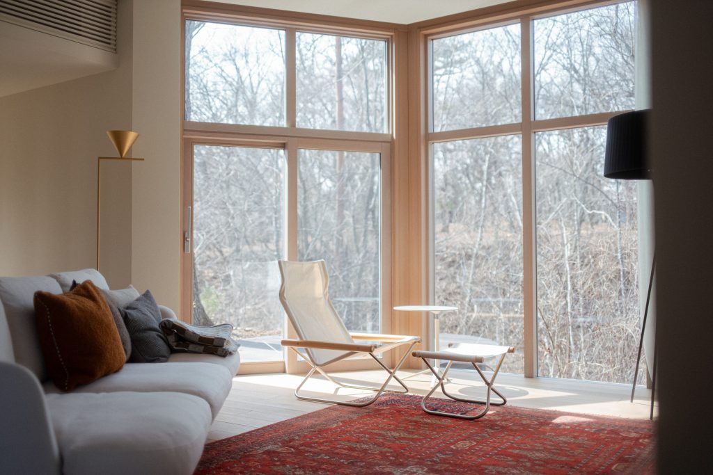 「山荘だとそんなに広い空間ではない場合も多いので、ニーチェアエックスのように気楽に運べて、使わないときに畳める椅子は、すごく理にかなっていると思います。永く使えるものを持ちたいと思っているので、メンテナンス性は大事です。だから、生地の張り替えができる点や、肘掛けは木製だから傷がついても削ればいいという点はすごくいいですよね。あとは、単純な素材で作られているというところも気に入っています。私たちは建築だけでなく、家具やカトラリーひとつを選ぶこともあるのですが、選ぶ基準は、素材が単純で永く持つもの。そういった考えも、ニーチェアエックスに通じていると思います」