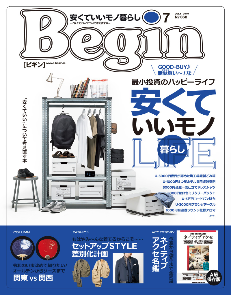 Begin 2019 7月号No.368「最小投資のハッピーライフ 安くていいモノLIFE」にてニーチェアエックス が掲載されました。